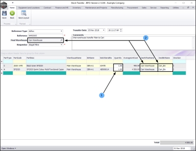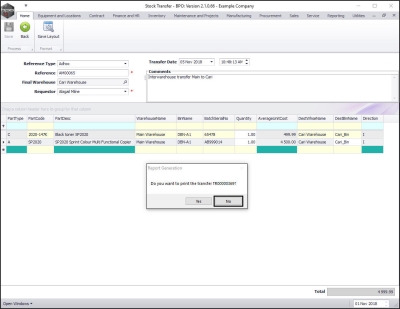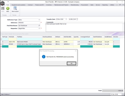 - the AB999014 Sprint Copier has been successfully transferred from the Main Warehouse.