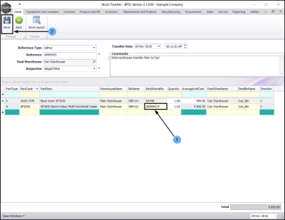 - and the 65478 Batch 2020-147K Black Toner has been successfully transferred from the Main Warehouse.