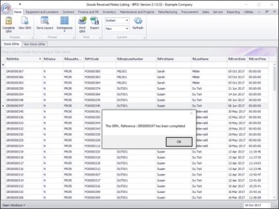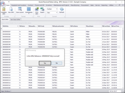 - A GRN Processing message box will pop up asking;