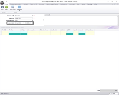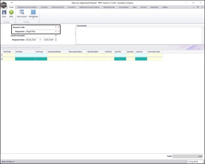 - The Add new Adjustment Request screen will be displayed.