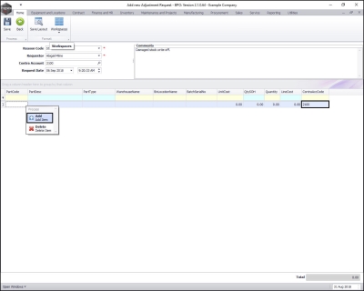 - When you have finished adding the adjustment request items, click on Save.