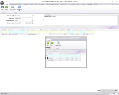 - The Select a warehouse for this part request screen will pop up.