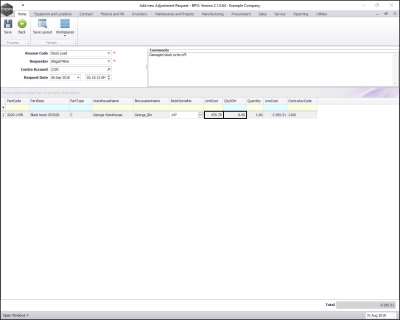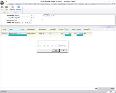 - Note: This request must be authorised before the Stock Adjustment is completed.
