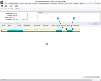 - Note: If the selected item is an A-Class or B-Class item, you will only be able to adjust one item at a time. If the selected item is a C-Class item then the quantity can be changed, when you move along this row adjusting the details, as required.