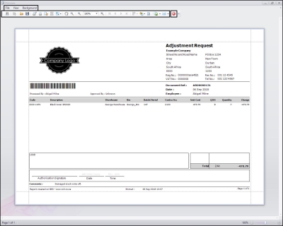 - You can then view the Adjustment Request report preview screen