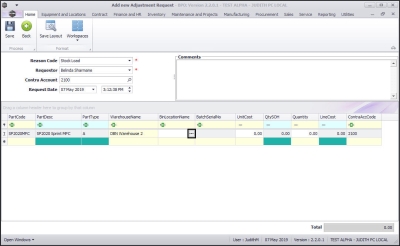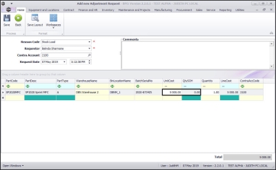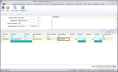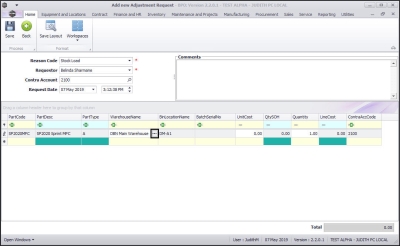 - The Part Code, Part Description, Part Type, Warehouse Name, Bin Location Name text boxes will now auto populate with the selected part details.