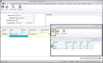 - The Select a Warehouse for this part request screen will pop up.