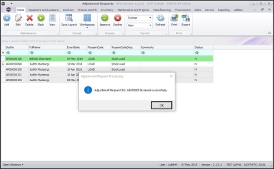 - Adjustment Request No. [ ] saved successfully.