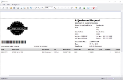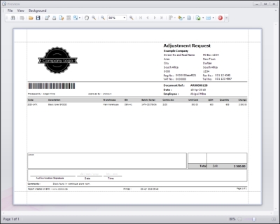 - You can then view the Adjustment Request report preview screen