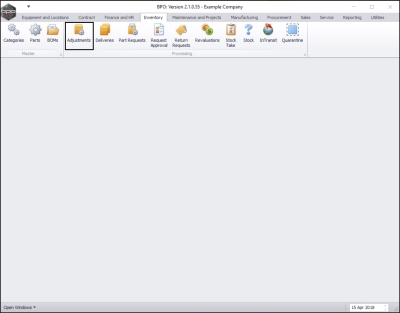 | Ribbon Access: Inventory > Adjustments |