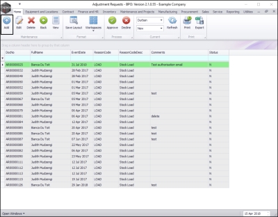 This request must be authorised before the Stock Adjustment is completed.