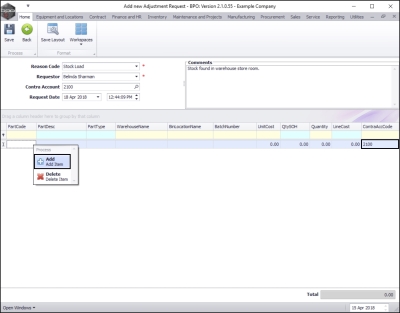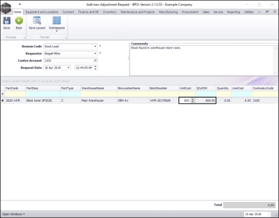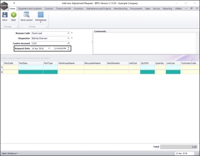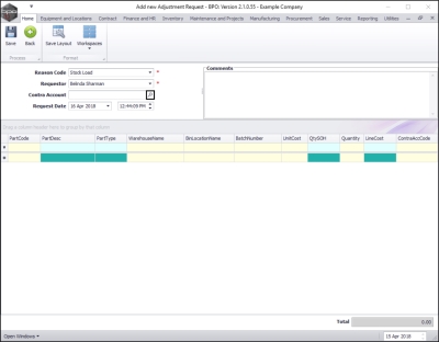 - Comments: Click in this text box and type in a comment relating to this adjustment.