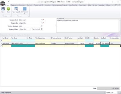 - Note: A-Class and B-Class serialised items can only be adjusted one item at a time, so the quantity will always be 1.