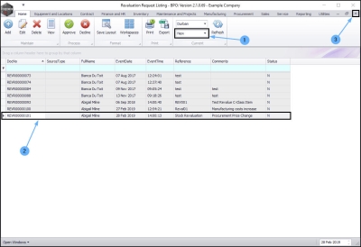 Note Revaluation Requests added via the Inventory > Revaluations screen or Equipment > Assets screen - are known as Standard Revaluations, whereas Revaluations auto created via the Quarantine GRN process are known as Inbound Cost Revaluations.