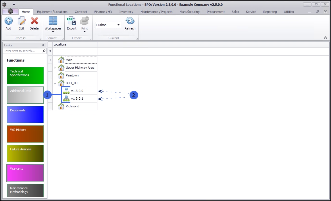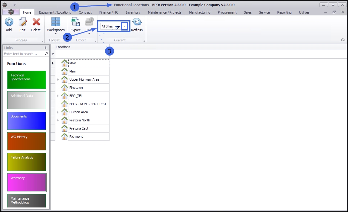 | Ribbon Access: Equipment / Locations > Functional Locations |