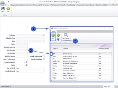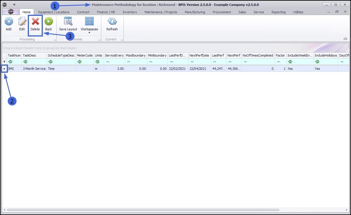 - Select the row of the location where you wish to link Maintenance Tasks.