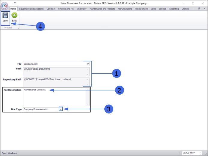 - Note: The document should be saved on the server to enable all users with the relevant security rights to view the document. If saved and linked from the workstation, another workstation cannot view the document.