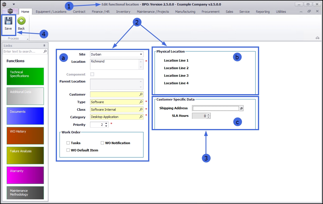 - The Edit functional location screen will open.