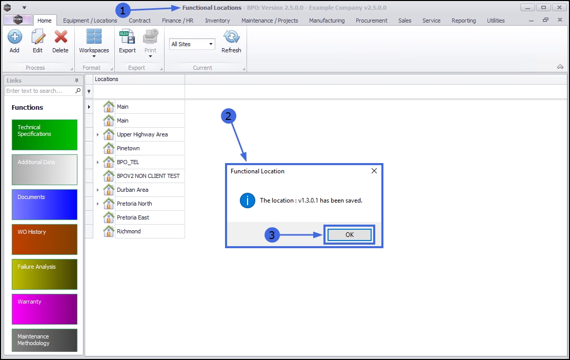 - A Functional Location message box will pop up advising the following: