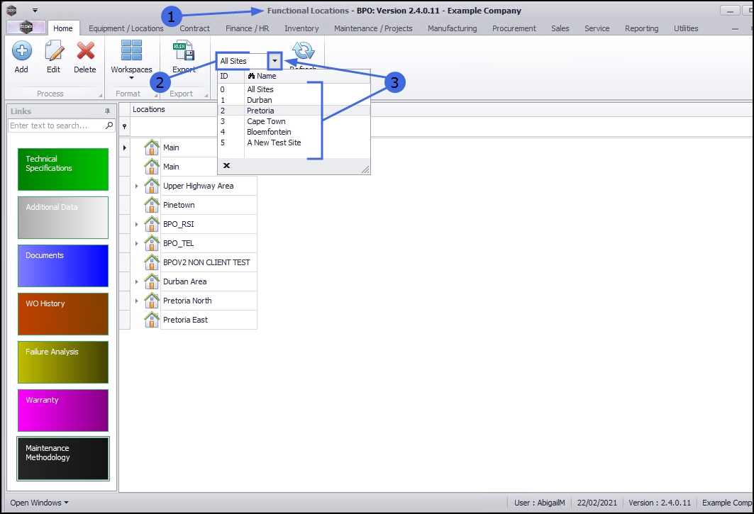 | Ribbon Access: Equipment / Locations > Functional Locations |