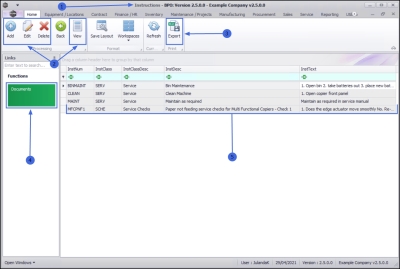 Ribbon Access:   Maintenance / Projects >   Instructions