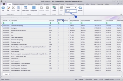 - The Work Requests listing screen will be displayed.