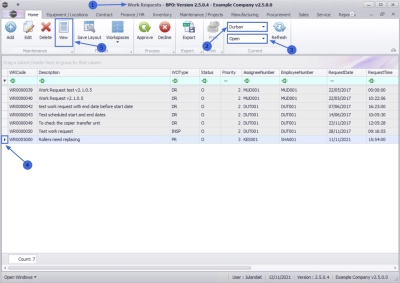 1. The Work Requests listing screen will be displayed,