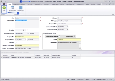 Ribbon Access: Maintenance / Projects   >   Work Requests