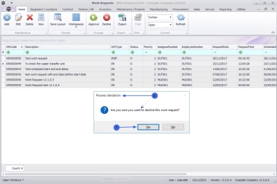 Note that a work request has to be in an Open status if you wish to Decline the work request.