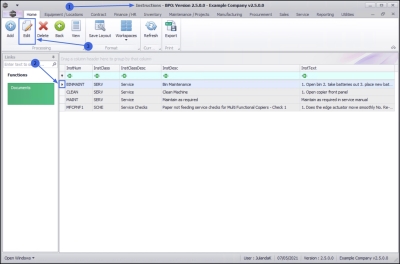 Ribbon Access:   Maintenance / Projects>   Instructions