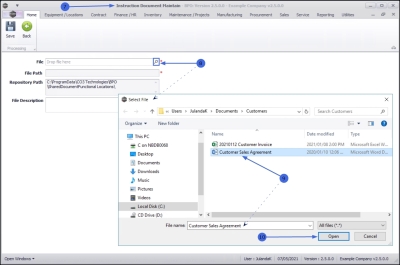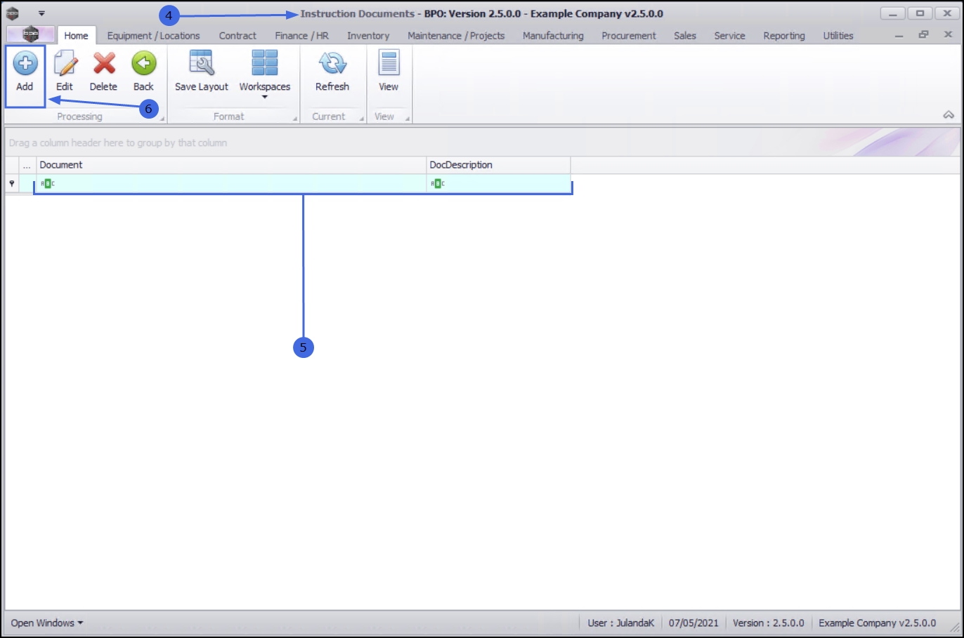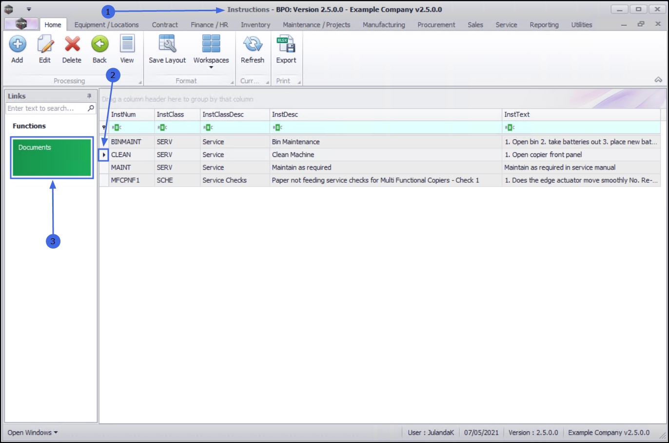 | Ribbon Access: Maintenance / Projects > Instructions |