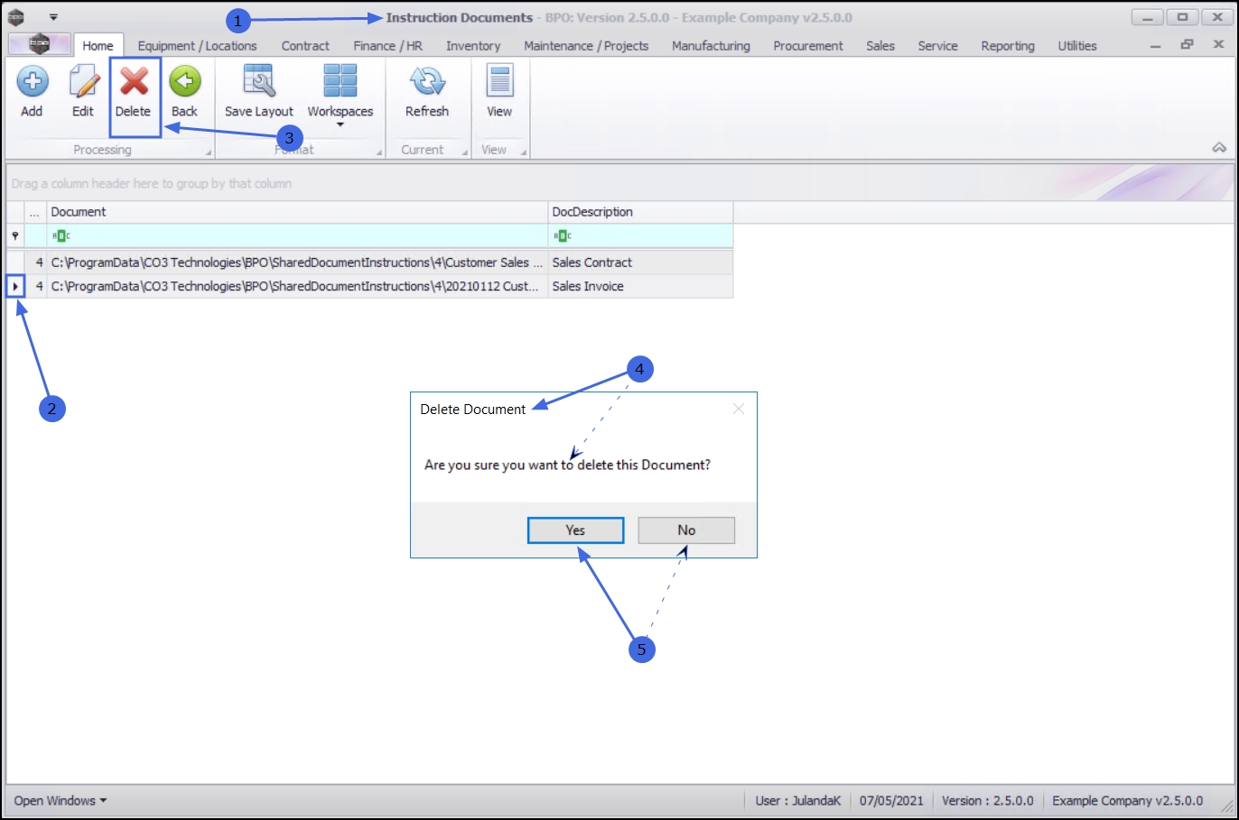 - Click on No to ignore the request and to leave the document on the Instruction Documents screen.