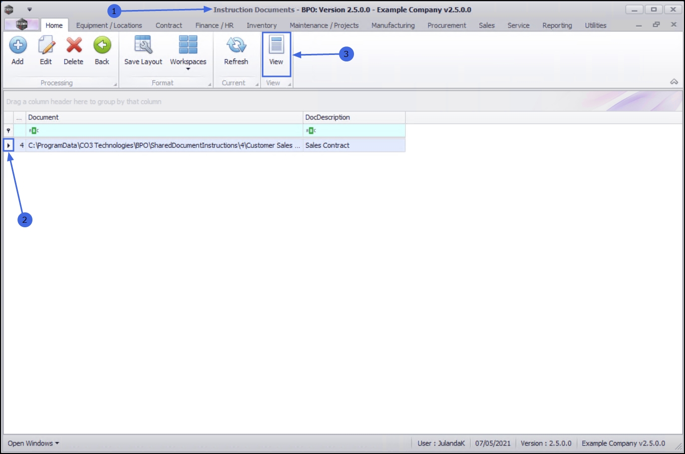 - The example has the Sales Contract saved as a Microsoft Word document.