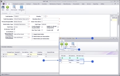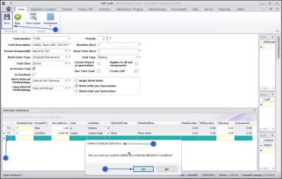 - Click on the row of the Condition Based Schedule as this is the definition being created for the task.