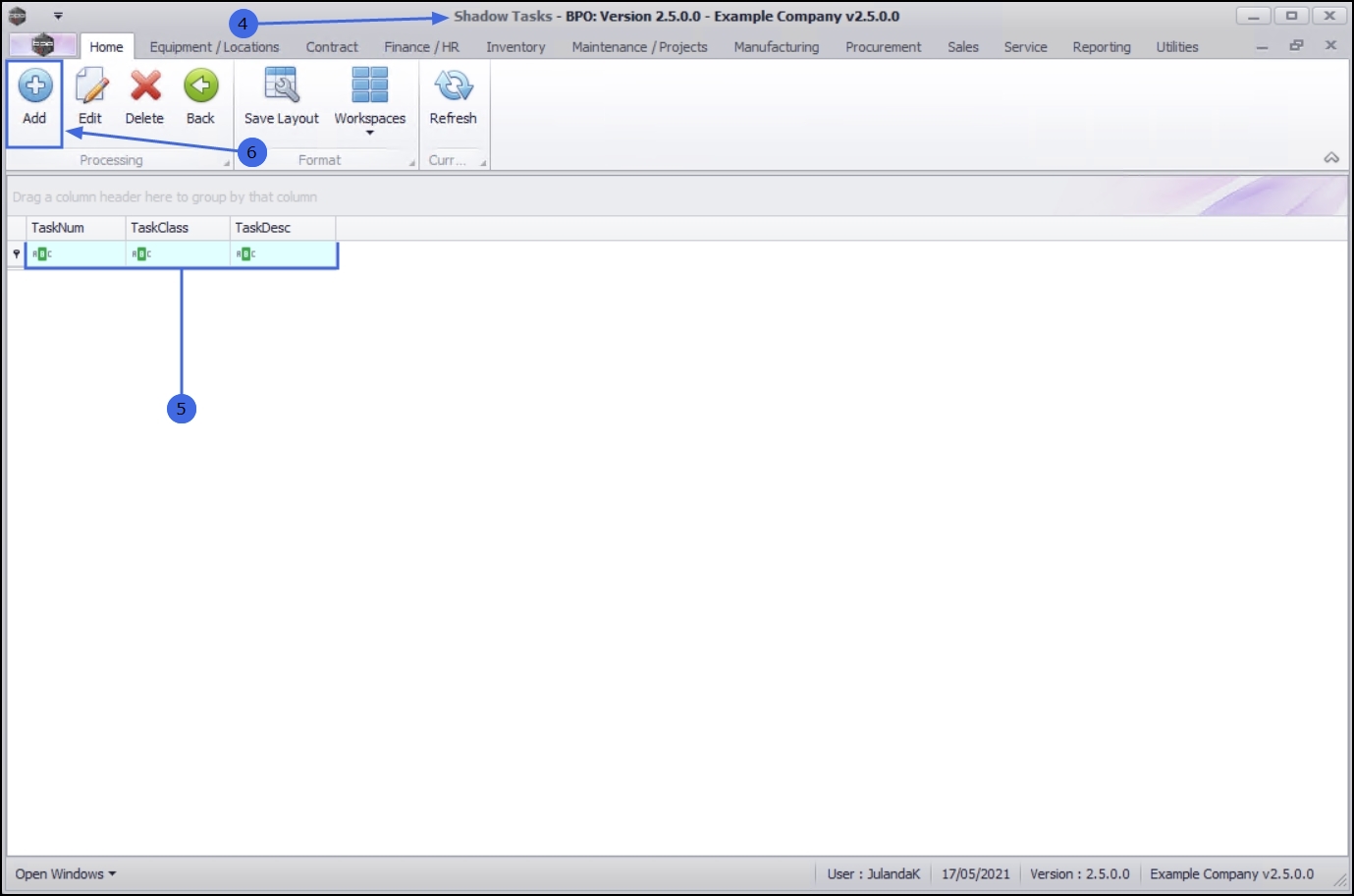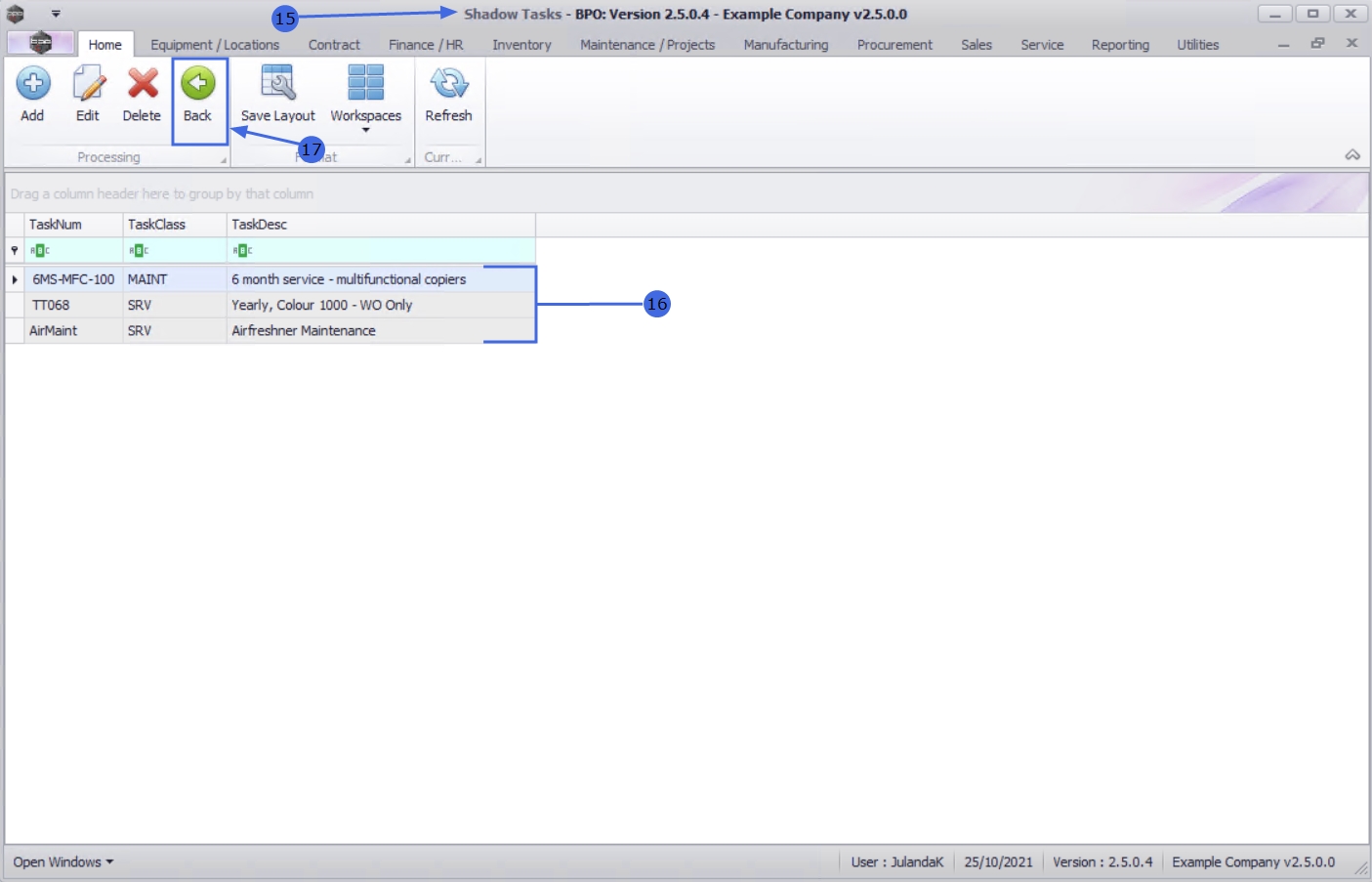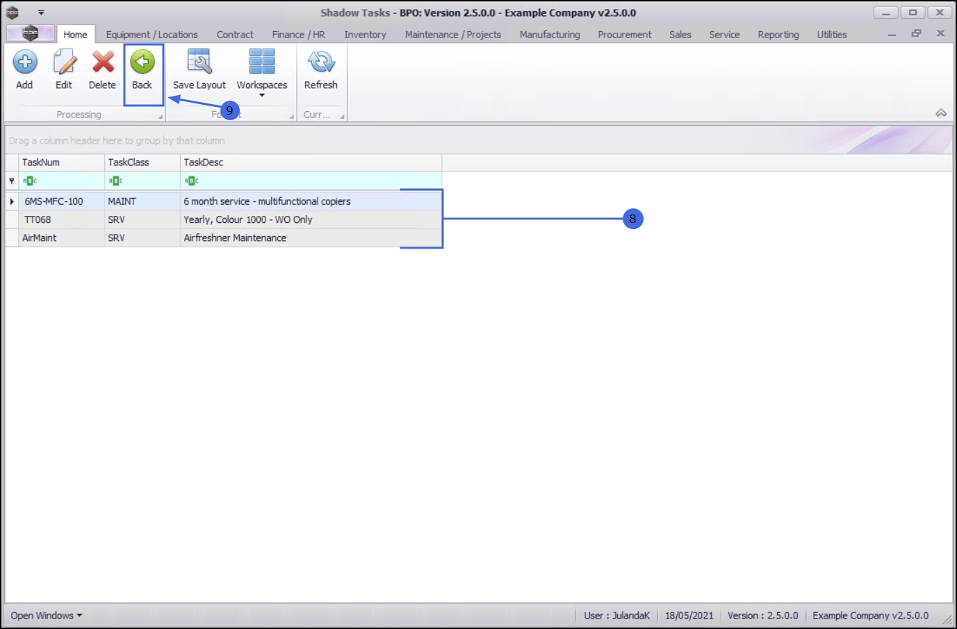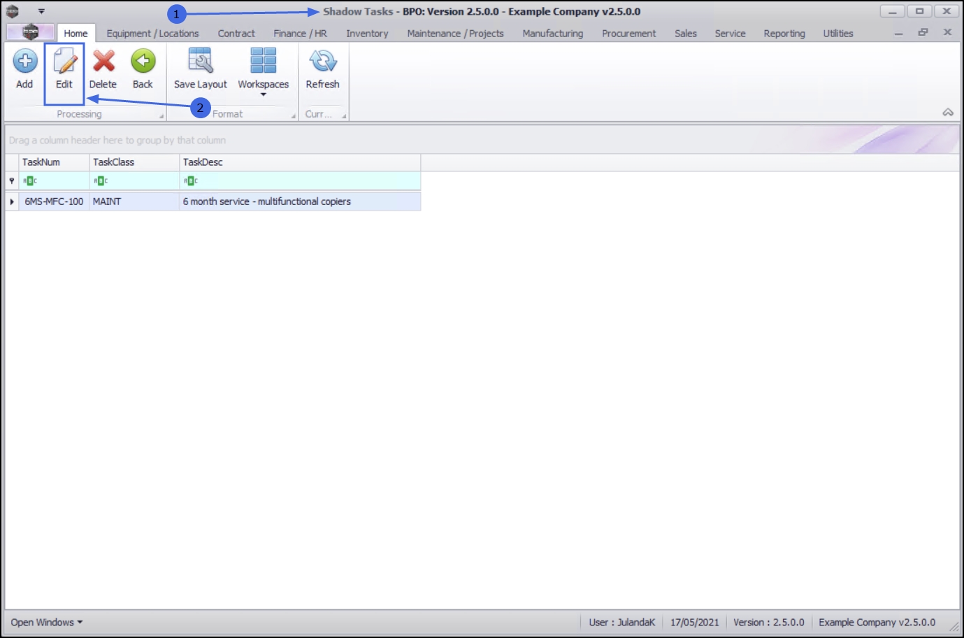 | Ribbon Access: Maintenance / Projects > Tasks |