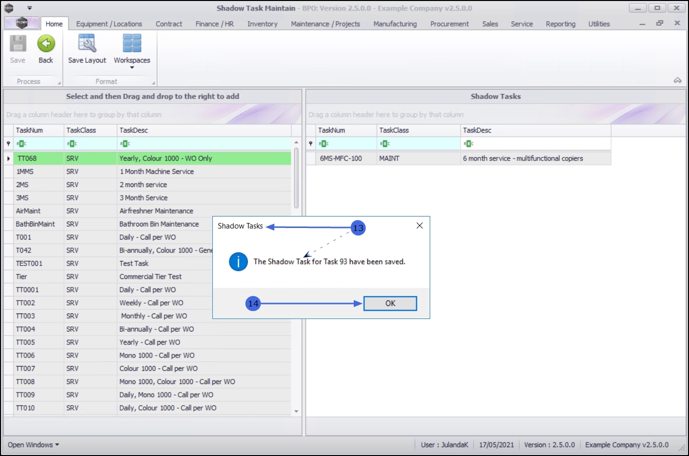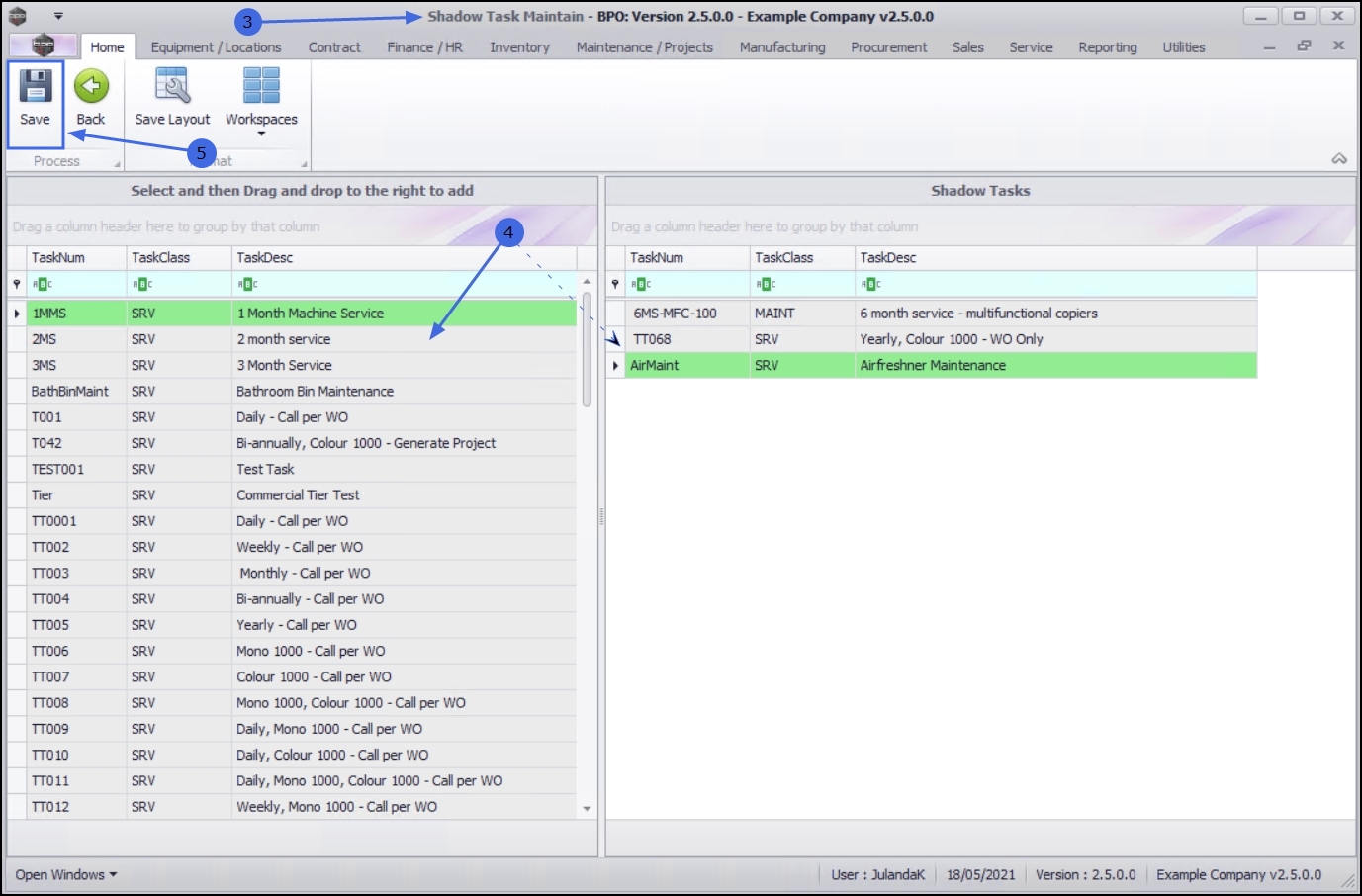 Note that you can remove a task item from the Shadow Task grid, by dragging and dropping the task back to the task list column, if it is not required.