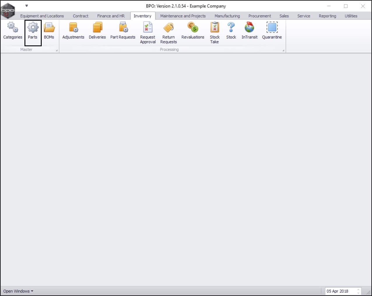 | Ribbon Access: Inventory > Parts |