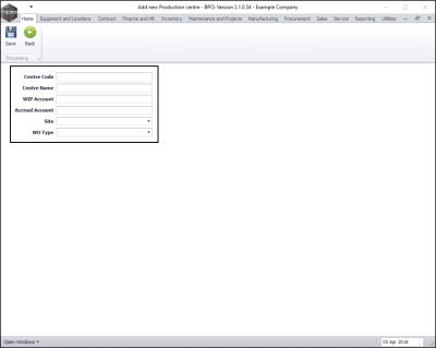 Production Centres - Add a Production Centre