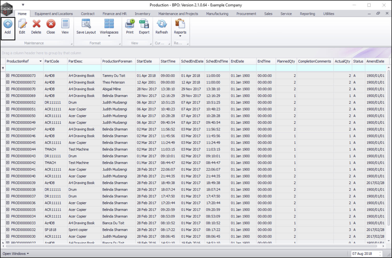 - The newly created production run has been added to the data grid.