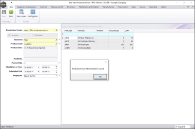 - The Add new Production Run screen will be displayed.