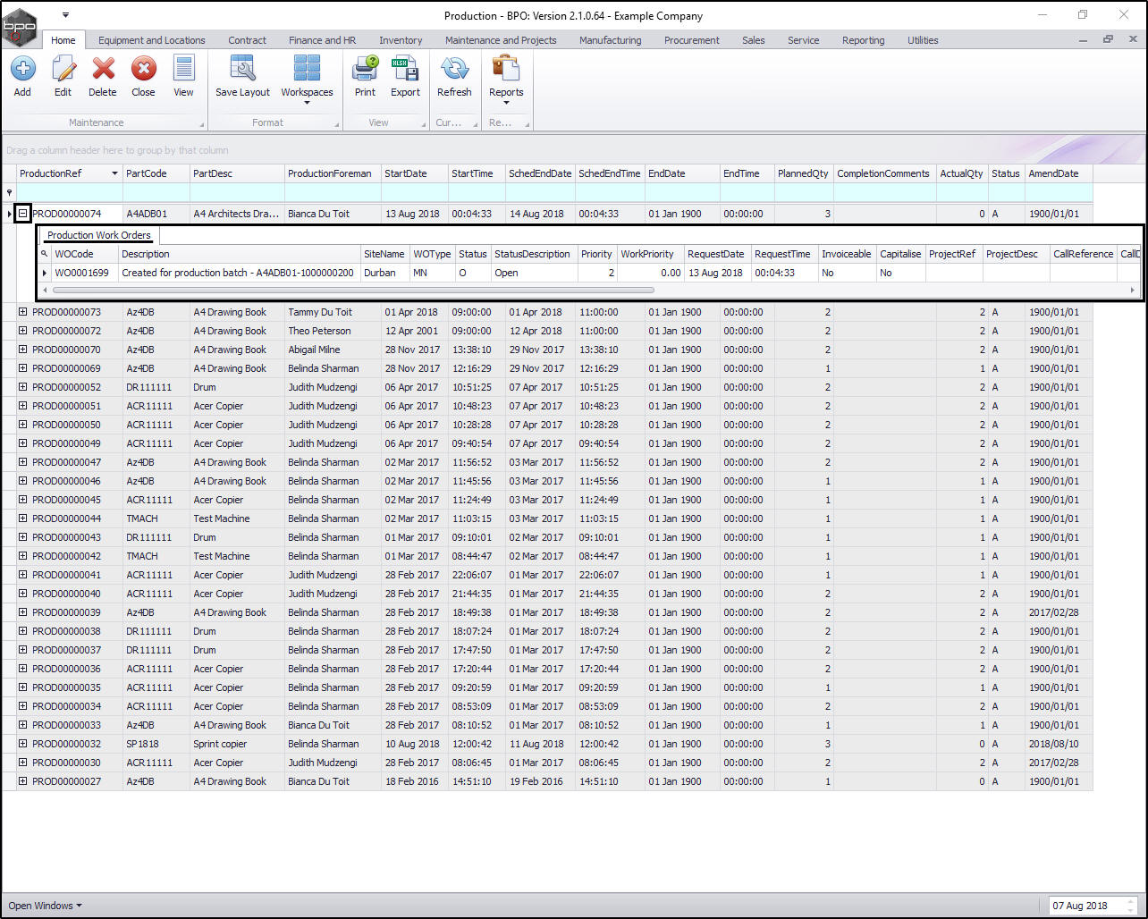 - Here you can see that the system has linked work orders to this production run in order for the work to be carried out.