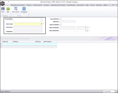 - Part Code: Click on the search button and select the inventory definition for this product code from the Select a part pop up screen.