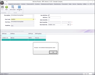 - The system will work out the subsequent batch number as being A4ADB01-1001 201.