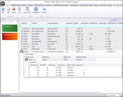 - Click on the expand icon in the row of the BOM that you wish to view the details of.