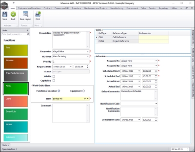 - Assigned To: This will populate with the person currently logged on to the system. You can click on the search button and search for an alternative person to be responsible for the part request if required.