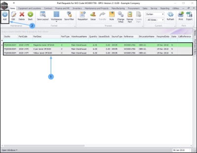 - When you have added all the required details to the Part Requests screen, click on Save.