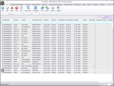 - Production listing screen.