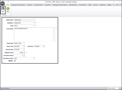 - Billable: Click on this check box if this labour time is billable.