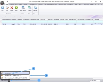 - Click on the Open Windows drop-down arrow to display the
