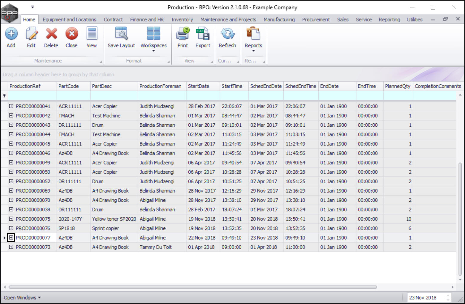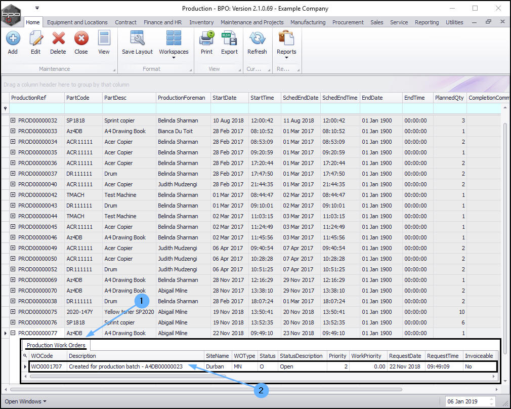 - Click on Back or Close the screen when you are done. (You can keep closing screens until you return to the Production screen).